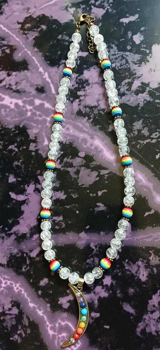 Rainbow/Clear Crackle Crescent Moon Necklace
